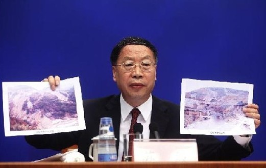2012年6月,工业和信息化部副部长苏波向媒体展示因稀土开采导致环境破坏的照片