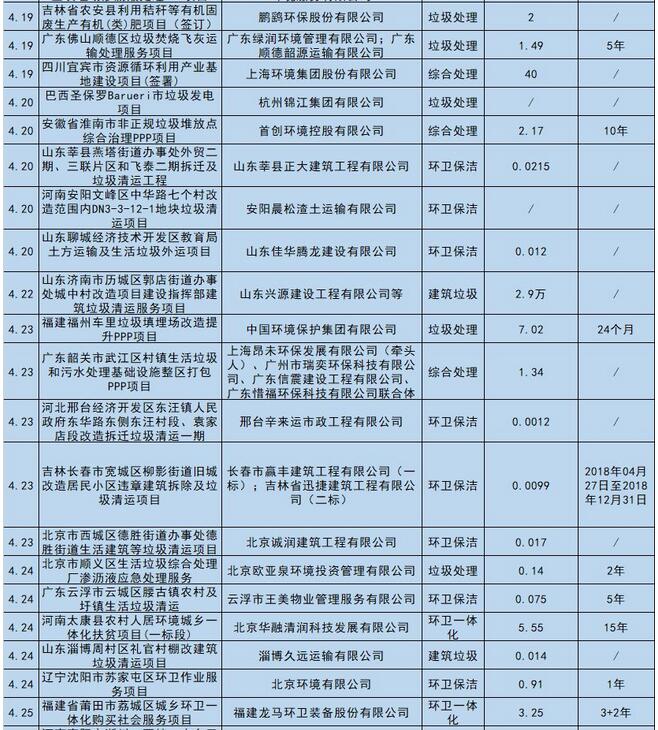 继3月落地的固废项目达105个后,4月落地项目更高达135个,环卫占比超半数,其中,以龙马环卫、中环洁、锦江环卫、劲旅环境、中联环境为代表的非传统环卫企业强势崛起,纷纷斩获环卫类项目,拿单实力不容小觑。